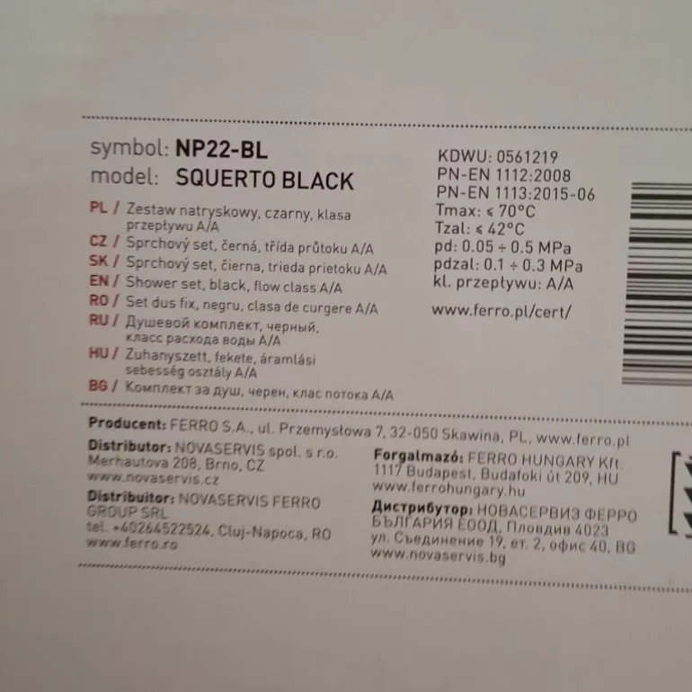 Ferro Squerto Black NP22-BL — это не просто душевая стойка, а умное решение для дома, где комфорт важен не меньше, чем надёжность.