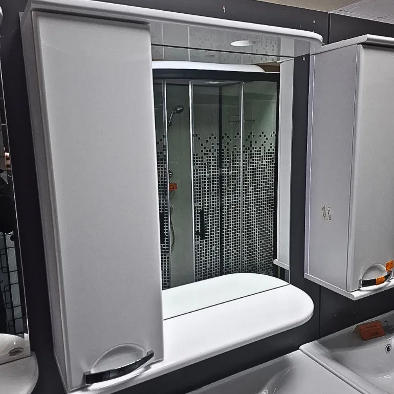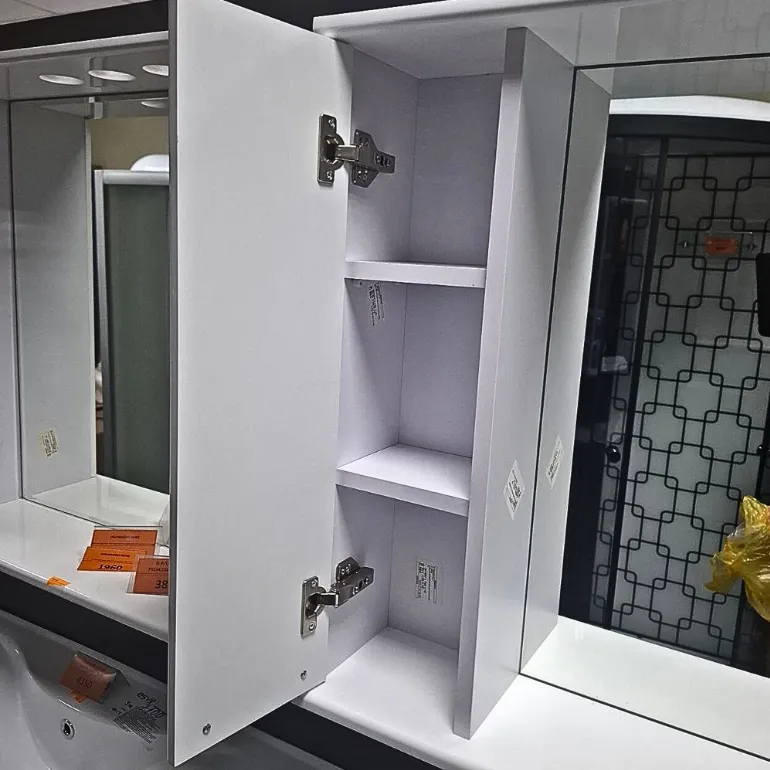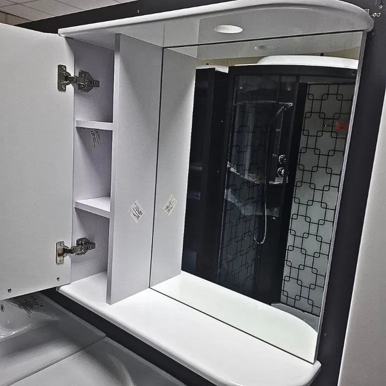 Во-первых, он экономит место, потому что имеет оптимальную глубину — всего 20 см. Даже в небольшой ванной комнате он не создаст ощущения тесноты, зато вместит всё необходимое: косметику, кремы, лекарства или бритвенные принадлежности.